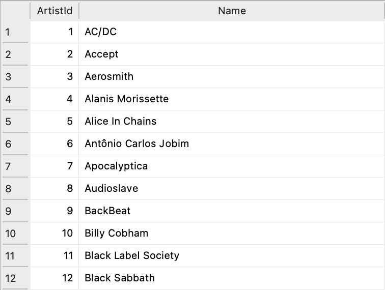 - query ด้านล่างเราจะดึงทุกคอลัมน์จากตาราง artists