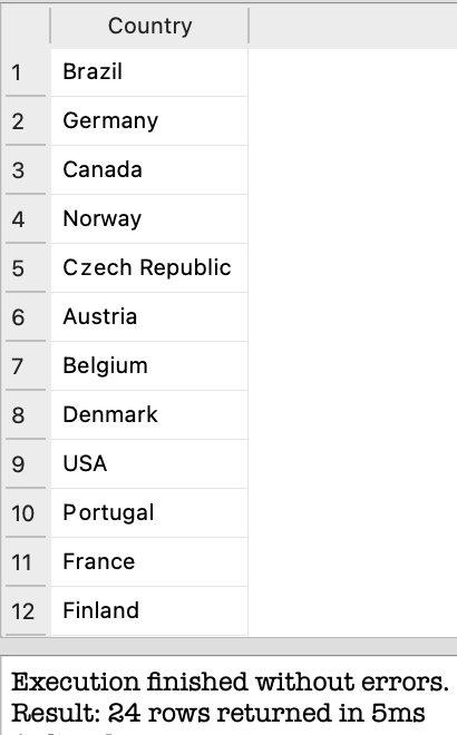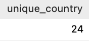- query ด้านล่างเราจะดูค่าที่ไม่ซ้ำกันเลยในคอลัมน์ country