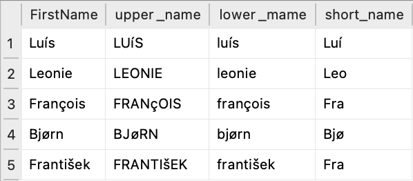 - เวลาที่เราต้องการฟิลเตอร์คอลัมน์ที่เป็น text เช่น ชื่อประเทศ ถ้าชื่อประเทศที่อยู่ในคอลัมน์นี้เขียนไม่เหมือนกัน เช่น ชื่อ ประเทศฝรั่งเศษ ในคอลัมน์ country มีอยู่หลายแบบ france, France, FRANCE เป็นต้น เราจะนำ value function มาใช้ใน WHERE Clause ด้วย