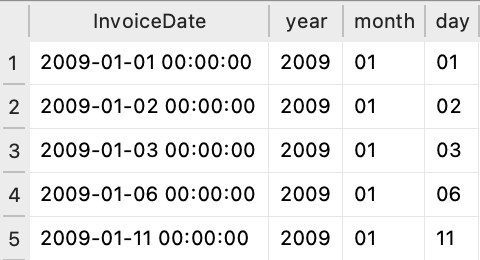 TYPEOF(STRFTIME('%d', invoicedate)) AS day