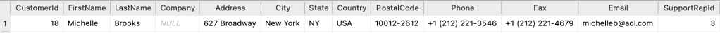- query ด้านล่าง เราจะดึงทุกคอลัมน์จากตาราง customers ฟิลเตอร์เฉพาะชื่อประเทศ USA และรัฐ NY