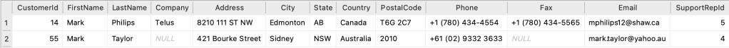 - query ด้านล่างเราจะฟิลเตอร์ชื่อลูกค้าที่ลงท้ายด้วยตัวอักษร m หรือ a