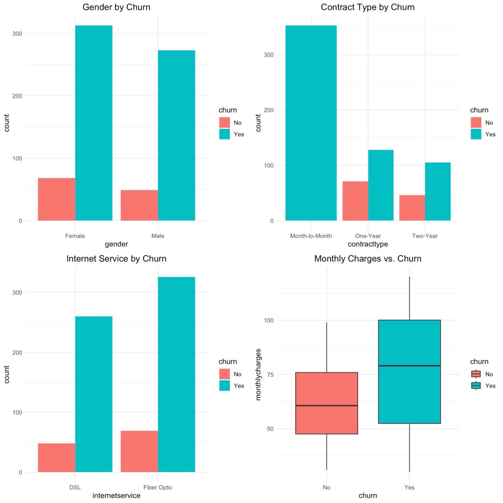 - ContractType : Type of contract the customer is on (Month-to-Month, One-Year, Two-Year).
