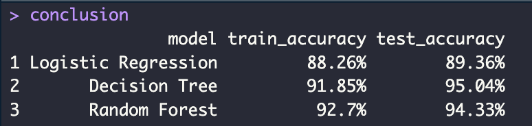 model = c("Logistic Regression", "Decision Tree", "Random Forest"),