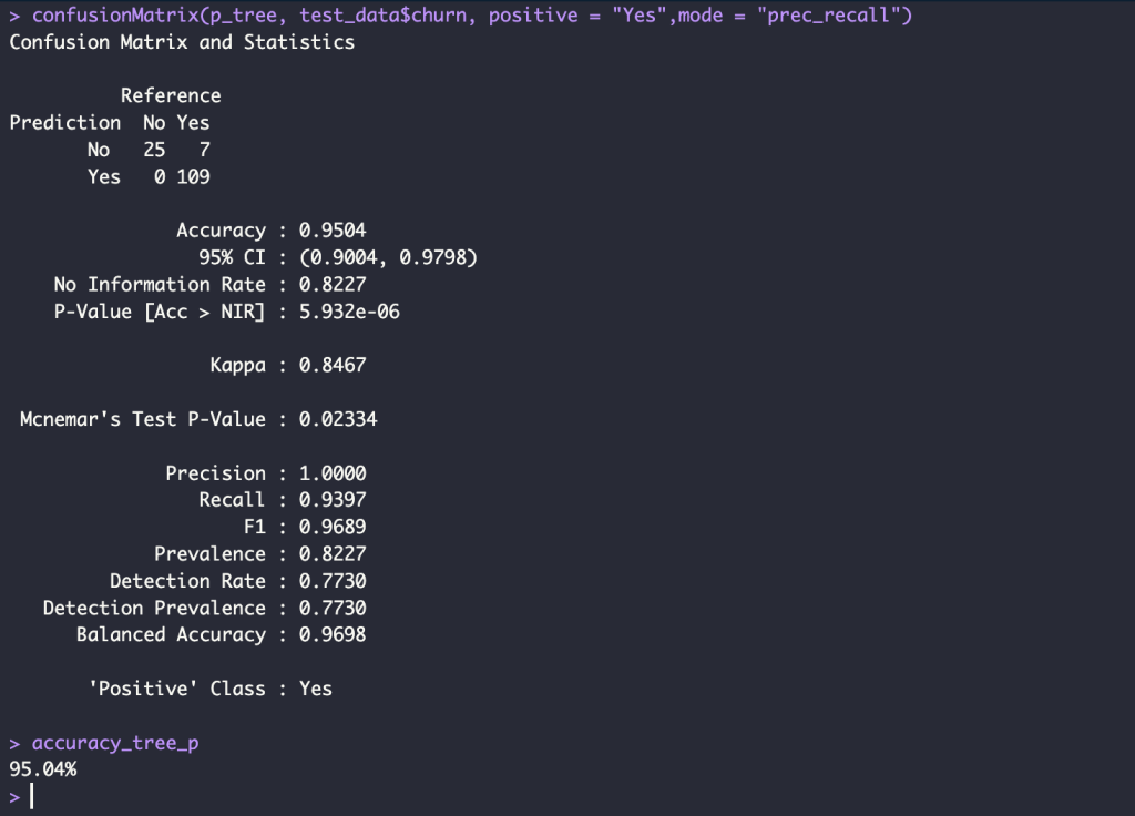 accuracy_tree <- round(mean( p_tree == test_data$churn),4)*100
