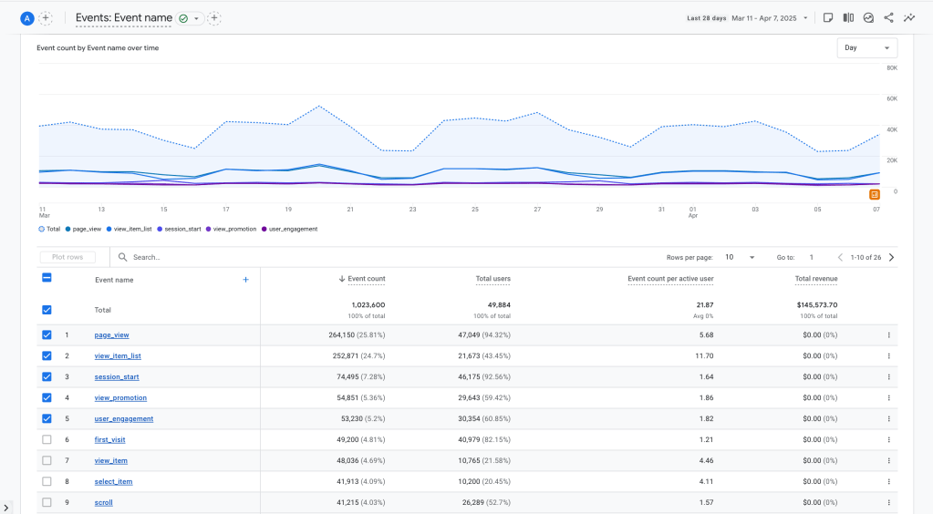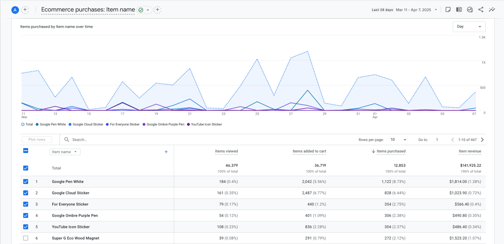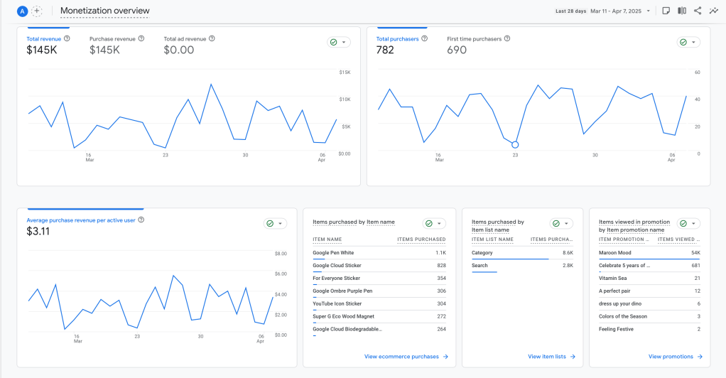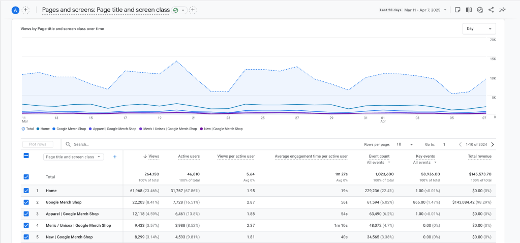 Google Analytics 4 property: Google Merchandise Store (web data)