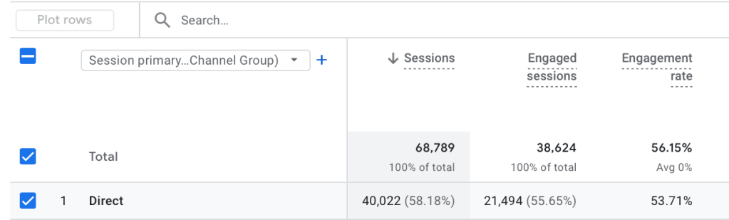 | Channel Group | Sessions | Engaged Sessions | Engagement rate |